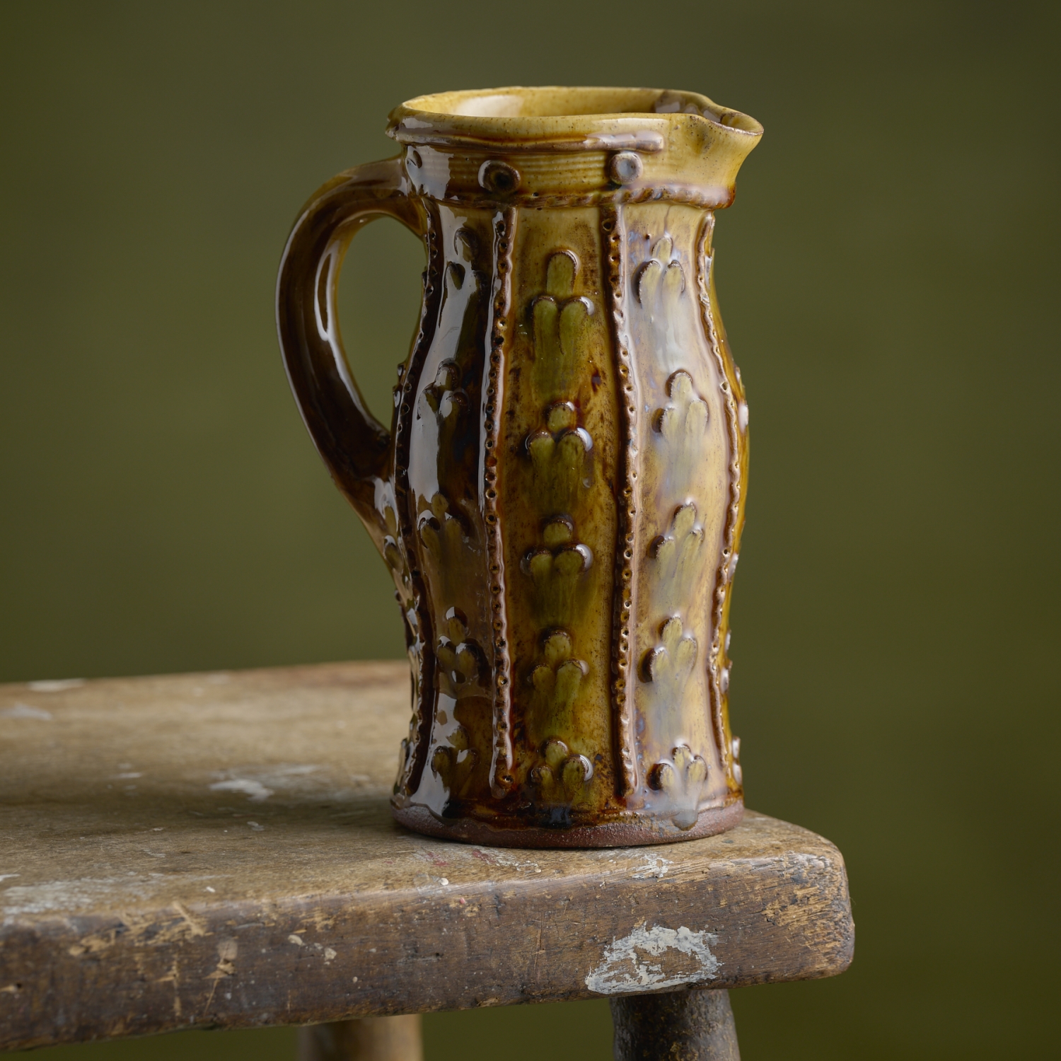 A dinky scaled baluster jug in yellow with soft green floret decoration.