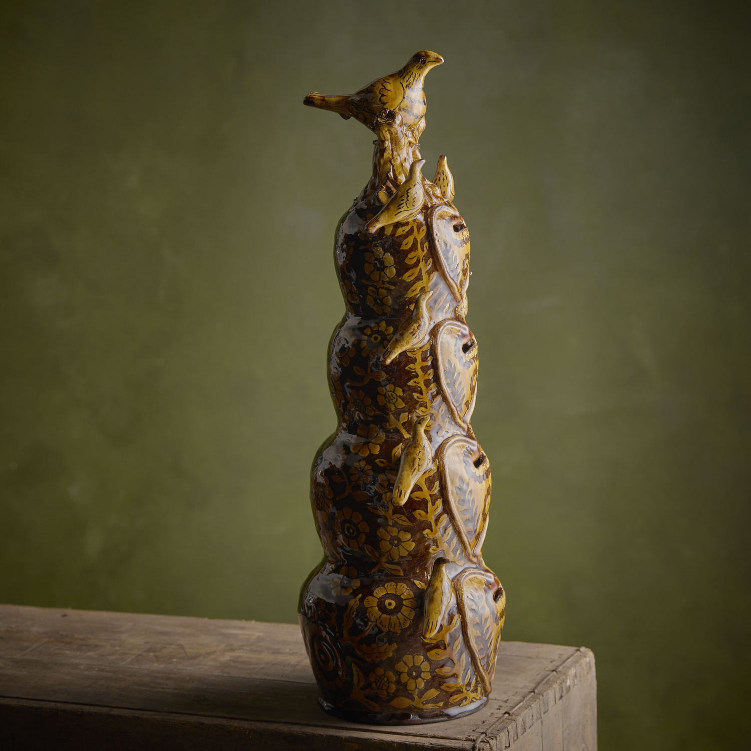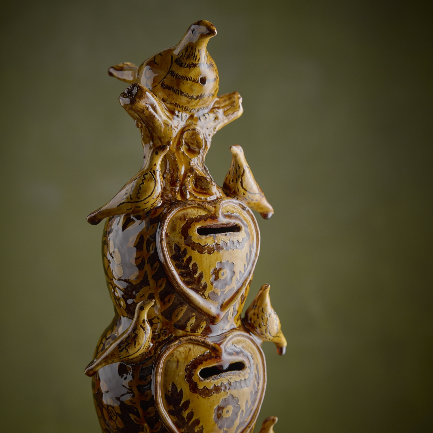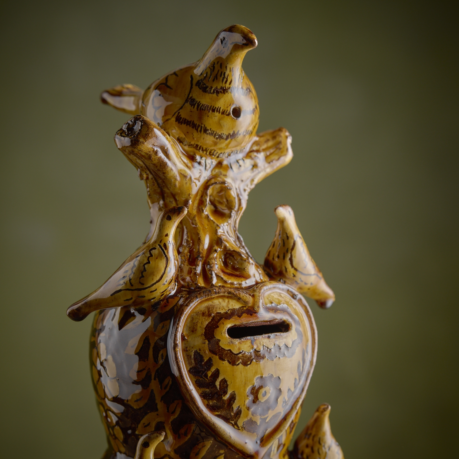 The four chambers in this moneybox are all separate for the collecting of your coins. The bird on the top of the stack is a two tone cuckoo whistle. This is the largest moneybox that Doug has ever made. Oh and there’s no bung, would you smash it to empty it?